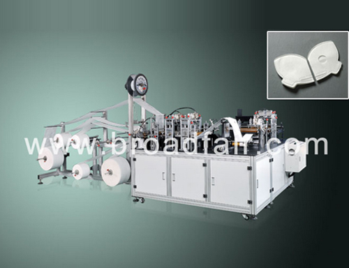 蝶型口罩制造机用于生产适用于高污染工业用的蝶型型口罩,口罩本体部分可使用6-10层的PP无纺布及过滤材料。从原材料入料到鼻线插入、成品的制成均为一条线自动化作业。口罩可安装呼吸阀,过滤效果可达N95标准。